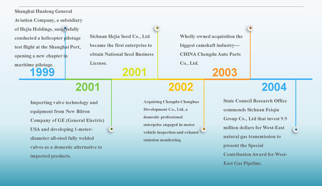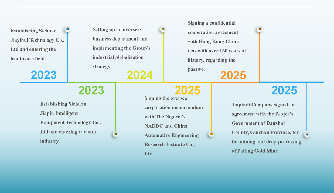 Group owns 33 industry-leading holding companies, owned CHINA Chengdu Auto Parts Co., Ltd, Chengdu Chengbao Development Co., Ltd, Sichuan Feiqiu Group Co., Ltd, Chengdu Bomei Yida Enterprise Management Co., Ltd, Sichuan Hejia High-tech Research Institute, Sichuan Jiapin Intelligent Equipment Technology Co., Ltd, Sichuan Jiayihui Technology Co., Ltd, Sichuan Hejia Seed Co., Ltd, Sichuan Hejia Real Estate Development Co., Ltd, Guizhou Jinpin mining Co., Ltd, Chengdu Qiancundao Catering Management Co., Ltd.
