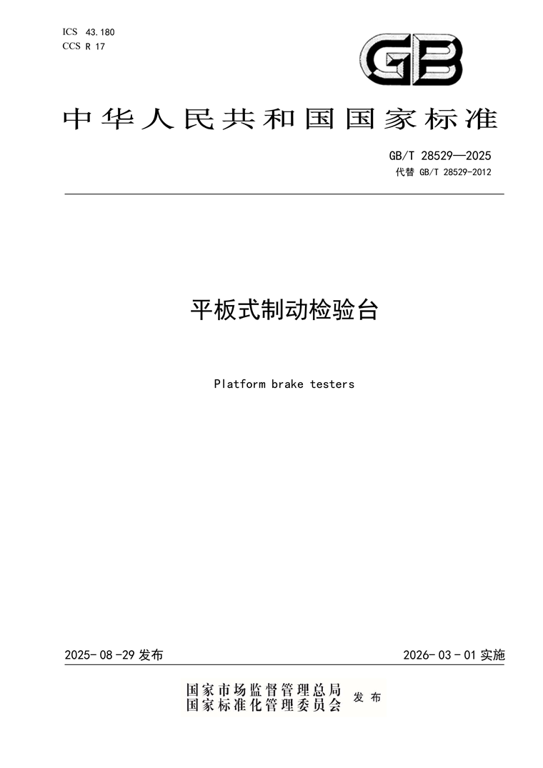 The national standard Platform Brake Testers Led and Revised by Chengdu Chengbao Development Co., Ltd Has Been Officially Released | Helping the Industry Standardization Reach International Advanced Levels